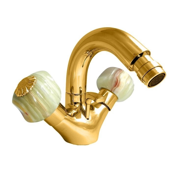 Смеситель для биде Nicolazzi Onice с донным клапаном и двумя ручками в золотом исполнении (2134GO09O)