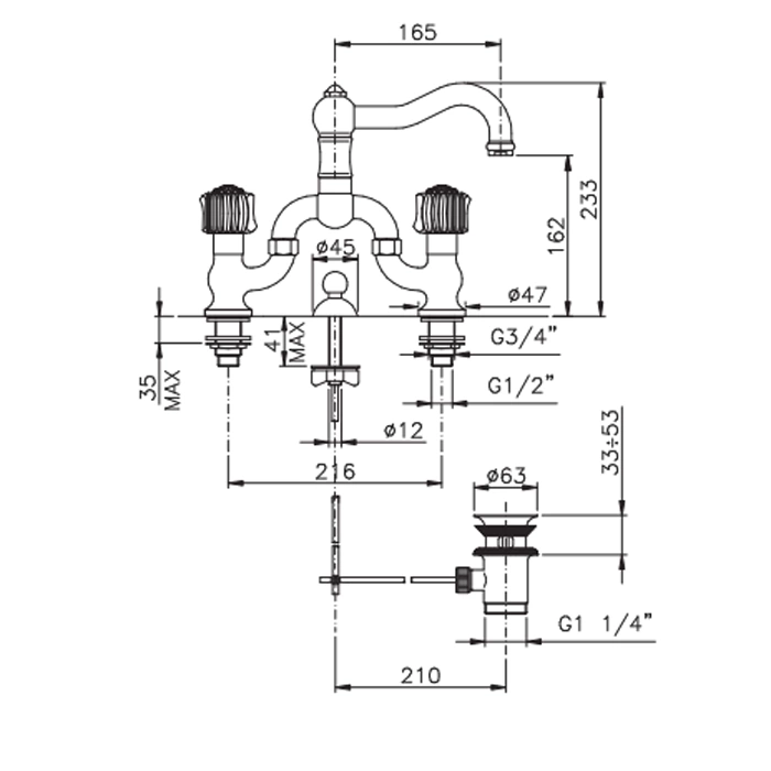 Смеситель для раковины Nicolazzi Onice на два отверстия с донным клапаном: стиль и функциональность