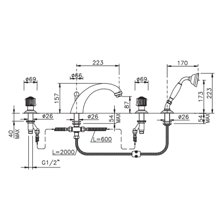 Смеситель для ванны Nicolazzi Onice с ручным душем, хром (2104CR09O)