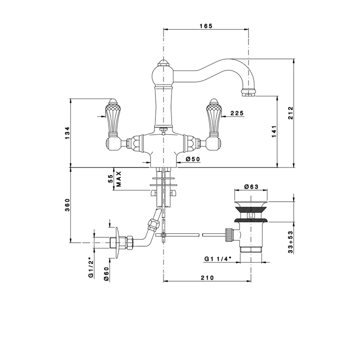 - Поворотный излив достаточной длины позволяет комфортно использовать раковину любого размера.