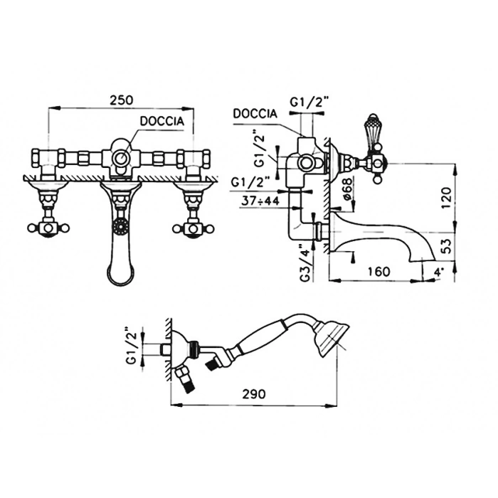 Смеситель для ванны Nicolazzi P.M.Blanc с переключателем на душ и верхним подключением