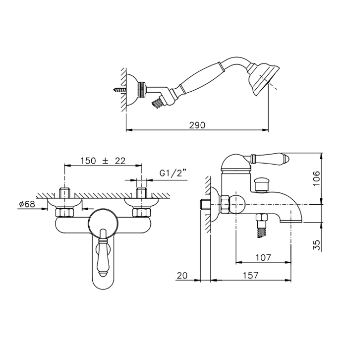 Однорычажный настенный смеситель для ванны с ручным душем Nicolazzi 3401CR76 - это идеальное решение для современной ванной комнаты. Модель сочетает в себе лаконичный дизайн, передовые технологии и проверенную долговечность, предлагая пользователю исключительное удобство управления водой.