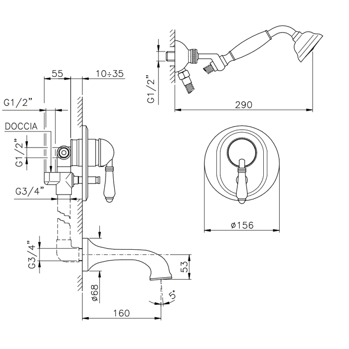 Смеситель для ванны Nicolazzi P.m. Blanc с ручным душем: стиль и функциональность