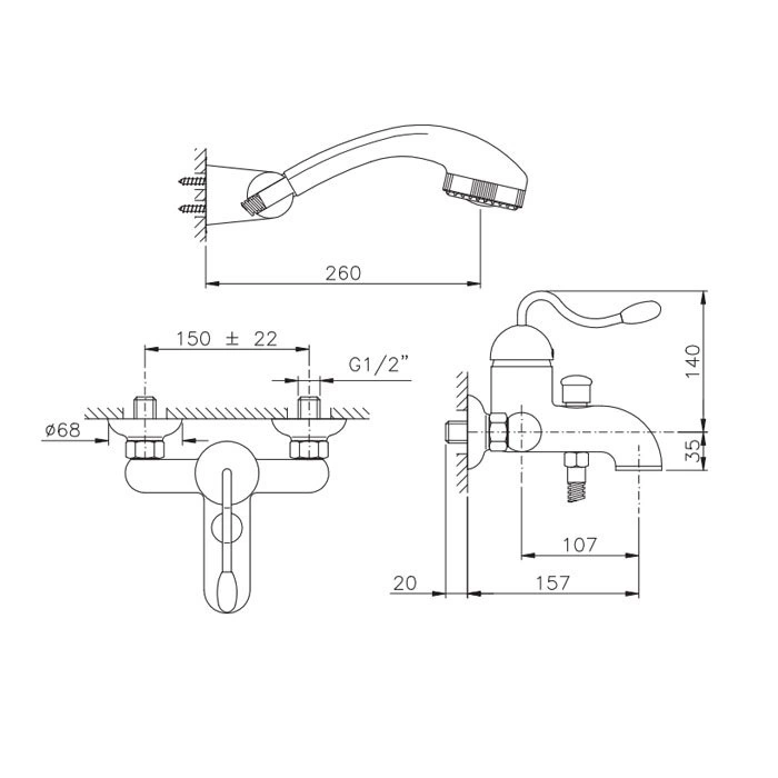 - Функция переключения «ванна/душ»: осуществляется удобным дивертором, интегрированным в корпус.