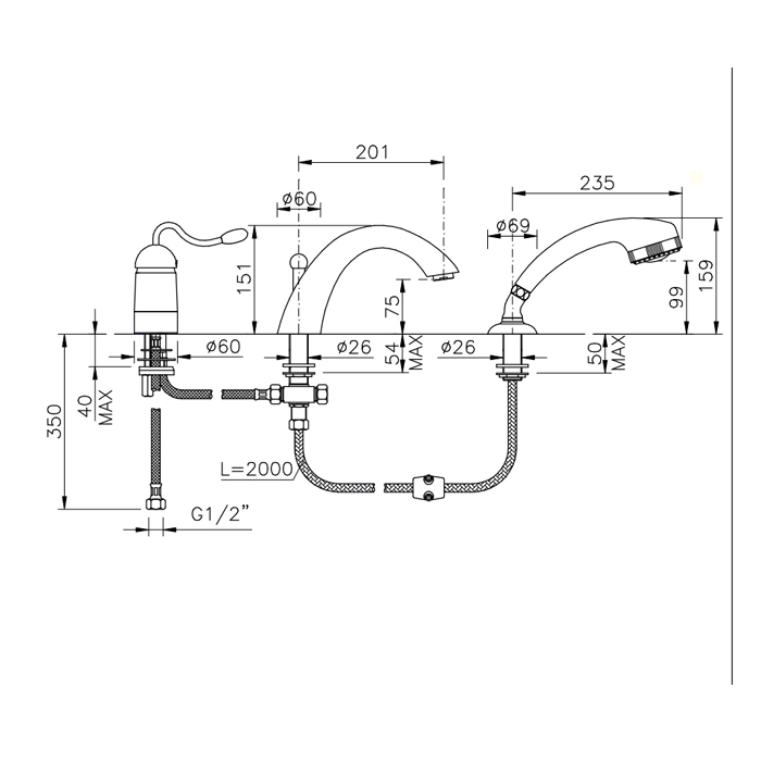 - Удобный переключатель: Надежный керамический картридж переключателя обеспечивает плавное и четкое переключение между изливом и душевым шлангом.