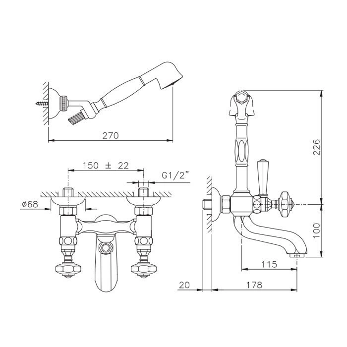 Монтаж смесителя Nicolazzi Teide Chic стандартный и может быть выполнен на борт ванны или на стену. Качественная внутренняя арматура из керамики обеспечивает плавный ход ручек и точную регулировку.