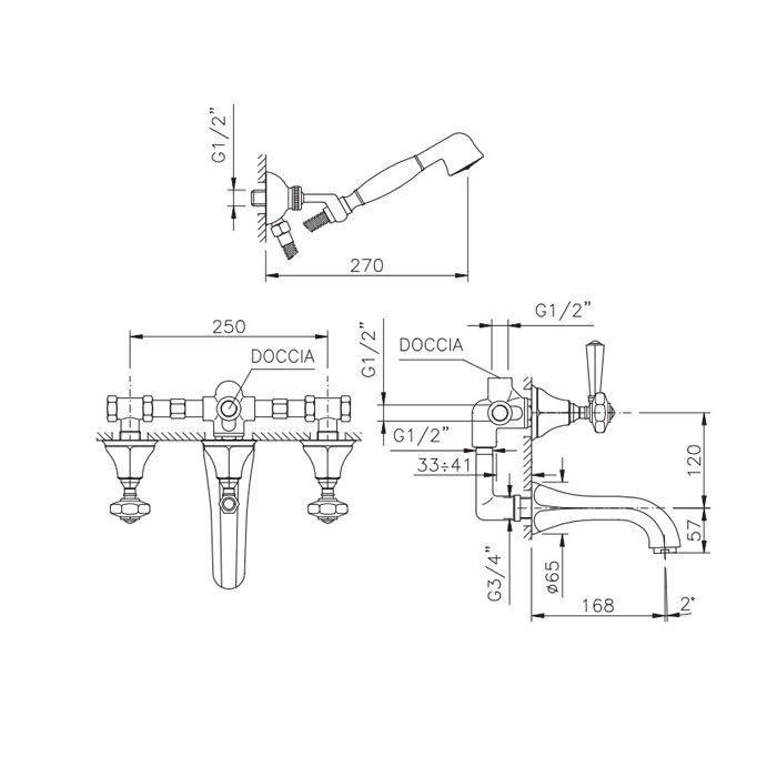 Смеситель для ванны Nicolazzi Teide Chic встроенный с двумя ручками и ручным душем, хром (1903CR15C)