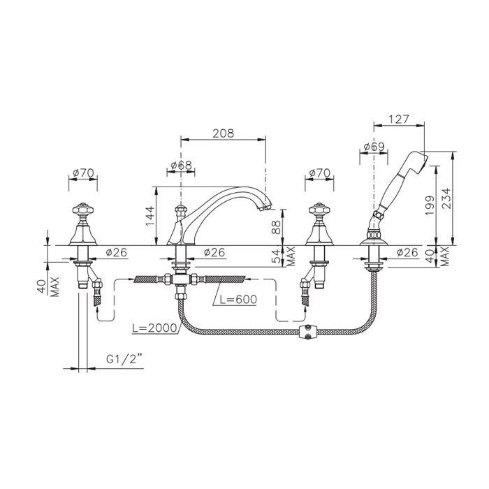 Смеситель предназначен для установки в ванной комнате и требует подготовленного подключения на четыре отверстия. Эта классическая схема монтажа обеспечивает стабильное крепление и аккуратный внешний вид. В основе конструкции - корпус из высококачественной латуни, что является гарантией долговечности и бесперебойной работы даже при активной эксплуатации.