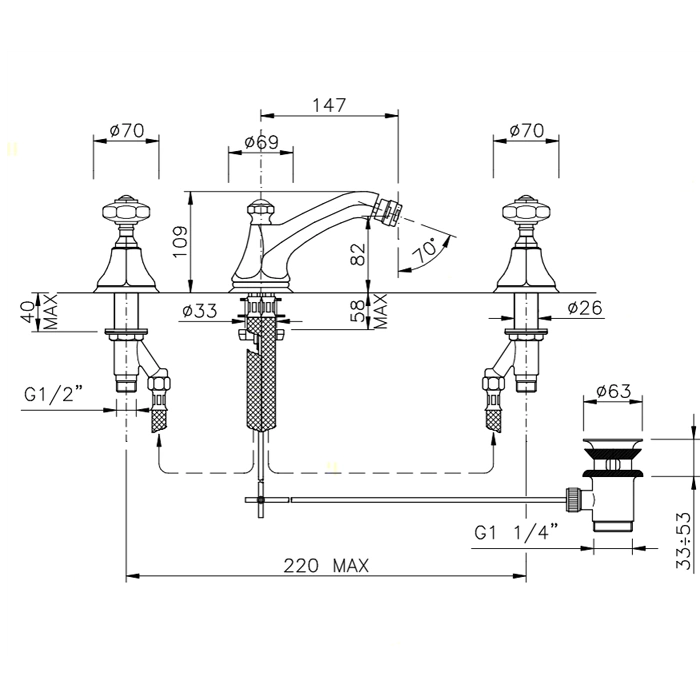Смеситель для биде Nicolazzi Teide с ручками Crystal Handle, хром (1915CR15)