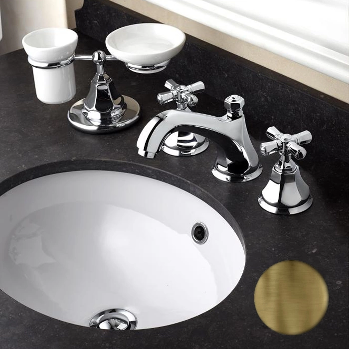 Смеситель оснащен удобными маховиками для плавной регулировки температуры и напора воды. В основе конструкции используется надежный керамический картридж, который гарантирует длительный срок службы без протечек. В комплектацию входит донный клапан, позволяющий быстро перекрыть сливное отверстие в раковине.