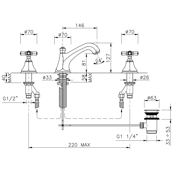 Выбирая эту модель, вы сразу получаете готовое решение. В комплекте есть все необходимое для установки на раковину с тремя отверстиями: