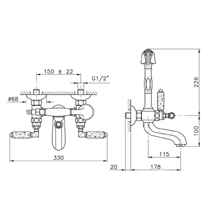 Стандартное межосевое расстояние составляет 150 мм. Этот смеситель для ванны идеально совместим с большинством современных и классических моделей ванн, имеющих два монтажных отверстия. Перед покупкой рекомендуем измерить расстояние между центрами отверстий в вашей ванне или столешнице.
