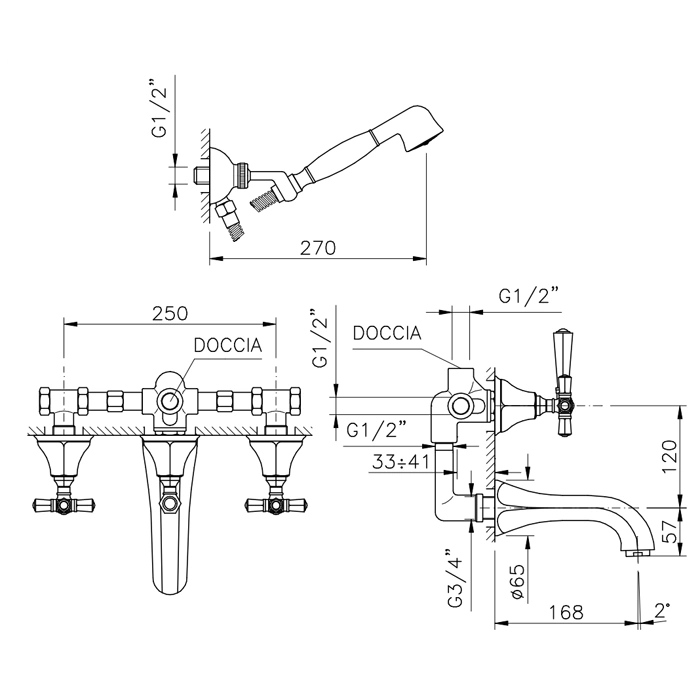 Встраиваемый смеситель для ванны Nicolazzi Teide с настенным изливом 168 мм, хром (1903CR05)