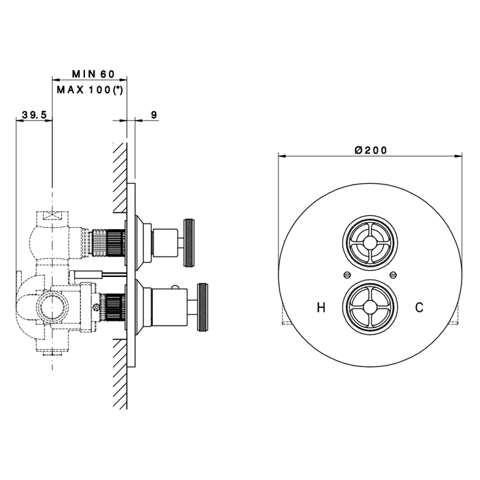 Что входит в комплектацию? Внешняя часть термостатического смесителя с запорными вентилями, декоративная хромированная крышка и крепежные элементы.