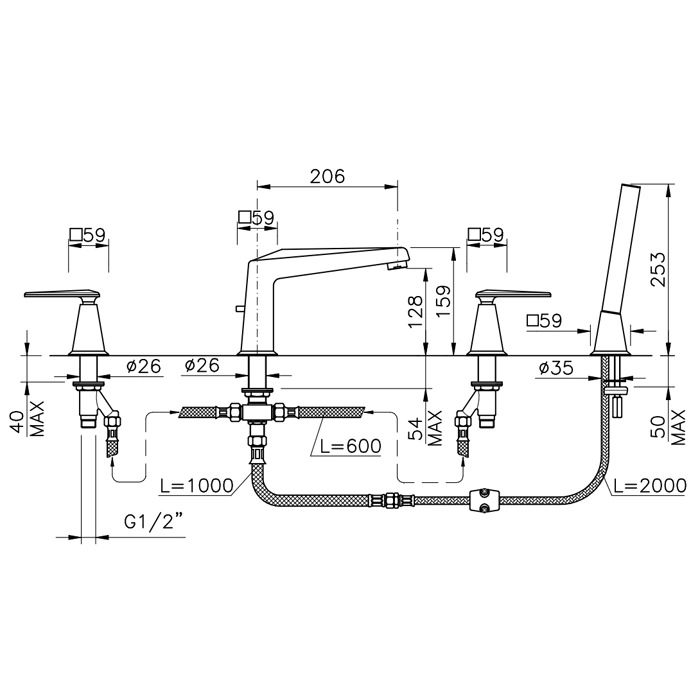 Смеситель предназначен для установки на борт ванны или на стену. Посадочный размер (межосевое расстояние) составляет стандартные 150 мм, что упрощает замену старой арматуры. Излив достаточной высоты и длины удобен для наполнения ёмкостей. Все необходимые элементы для подключения, включая эксцентрики и прокладки, входят в комплект поставки.