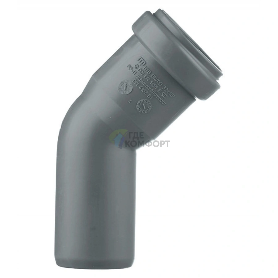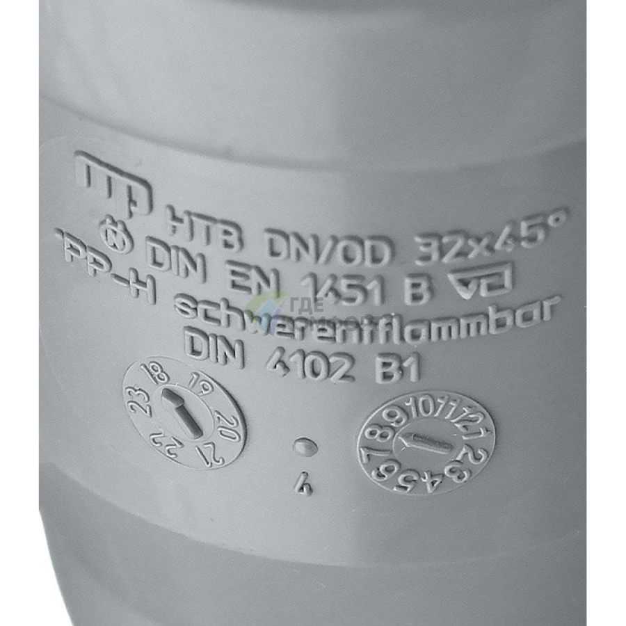 Отвод HTB 32 45° изготовлен из высокопрочного полипропилена (PP). Это современный полимерный материал, который специально разработан для систем канализации. Он не ржавеет, не боится химического воздействия бытовых стоков и рассчитан на длительный срок службы.