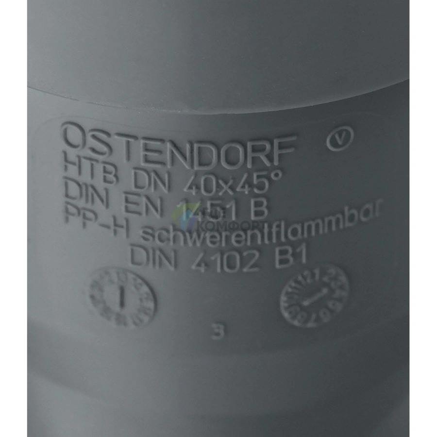 Отвод канализационный HTB 40 45° Ostendorf для надежного монтажа
