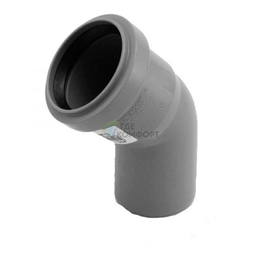 Этот фитинг из полипропилена предназначен для монтажа внутренних канализационных систем. Он обеспечивает плавное изменение направления потока сточных вод под углом 45 градусов, что минимизирует риск засоров и снижает шум при сливе.
