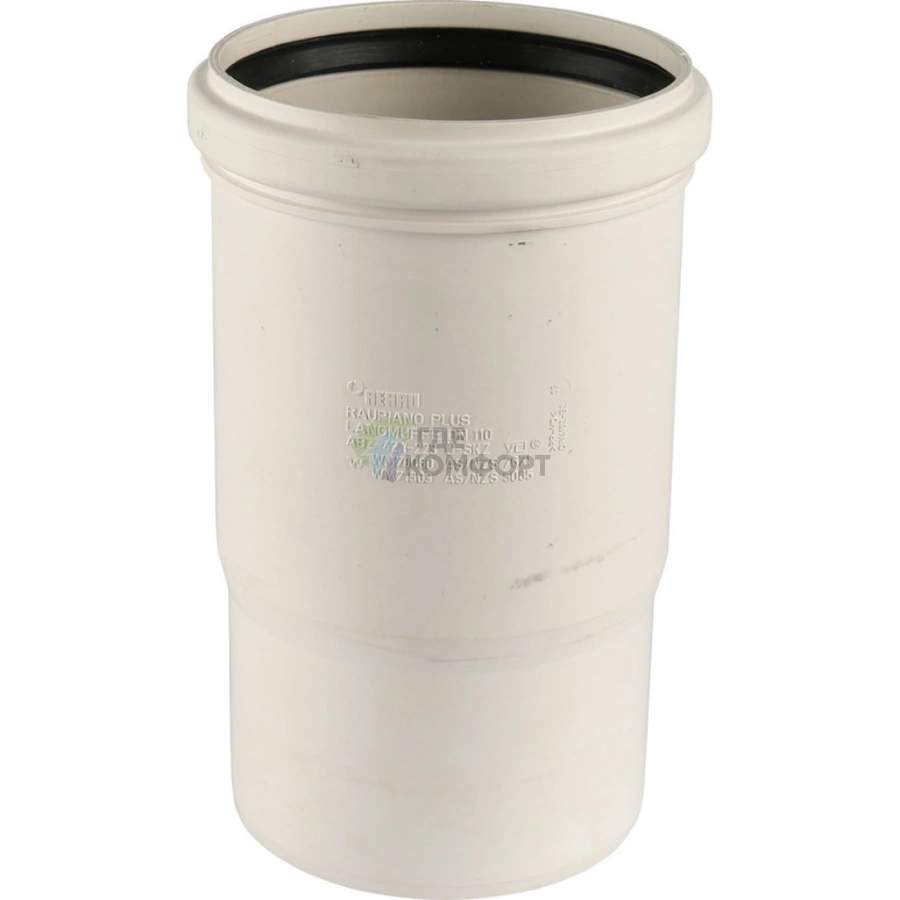 Компенсационный патрубок Raupiano Plus 110 монтируется в стояк и поглощает температурные деформации канализационных труб. При нагреве сточных вод полипропиленовые трубы расширяются, и именно этот элемент предотвращает напряжение в системе, защищая соединения от протечек и разрушения. Он обеспечивает бесшумность работы канализации и исключает риск появления трещин.