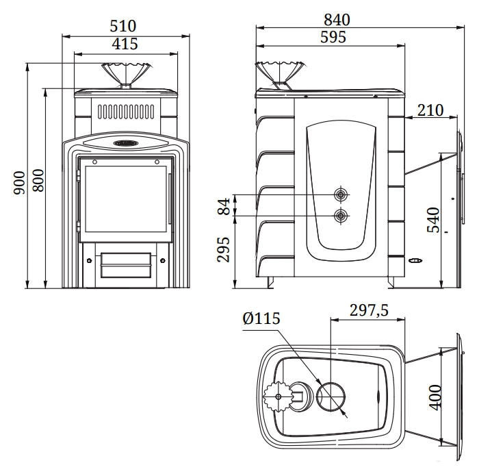 | Диаметр дымохода | 115 мм |