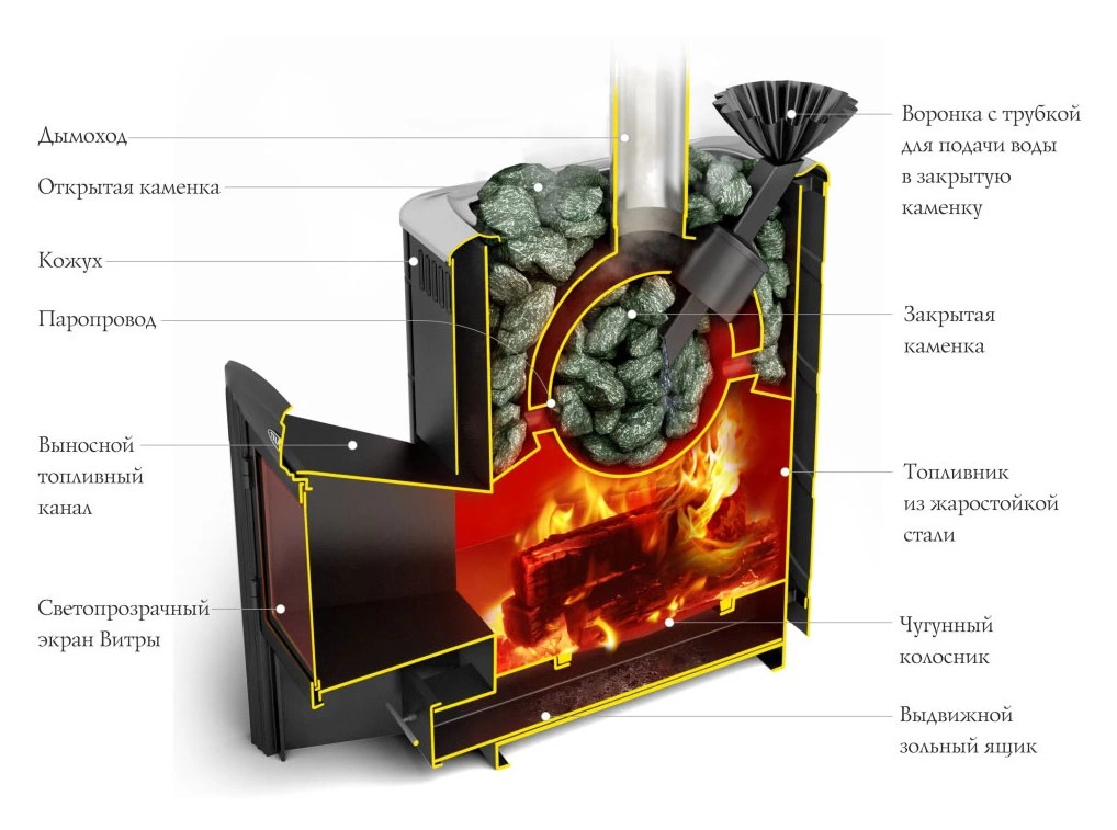 - Нужна ли футеровка? Топка из нержавеющей стали не требует футеровки шамотным кирпичом, что упрощает конструкцию и обслуживание.