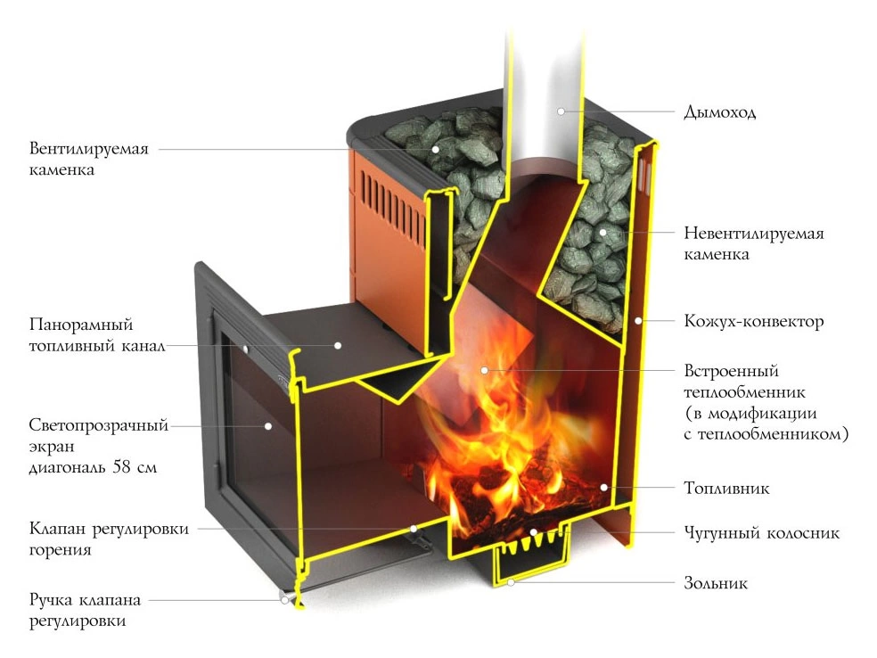 От материала топки зависят важнейшие параметры: долговечность, скорость прогрева и характер теплоотдачи.