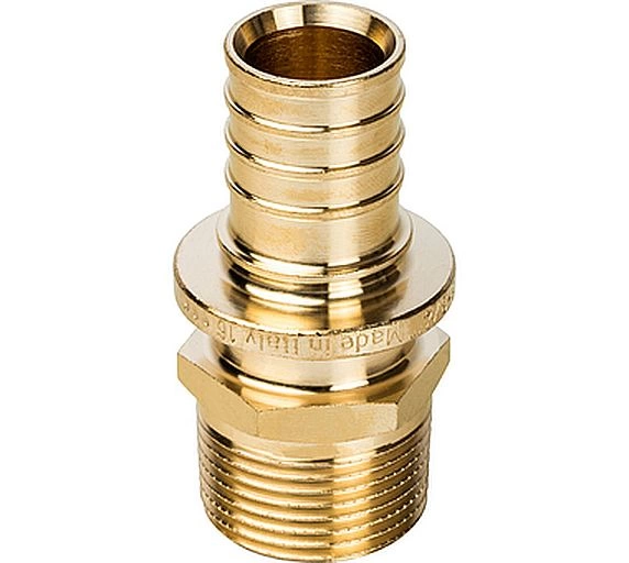 Данный аксиальный переходник предназначен для соединения труб из сшитого полиэтилена (PEX-труб) наружным диаметром 25 мм с оборудованием, имеющим резьбовое подключение 3/4 дюйма (наружная резьба).