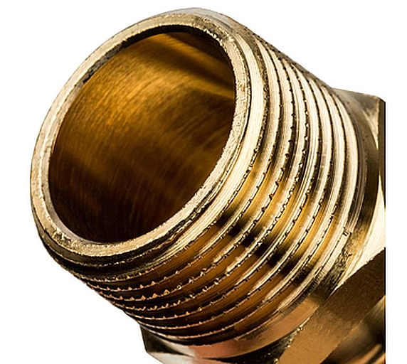 Переходник изготовлен из латуни марки CW617N (свинцовистая латунь). Этот материал обеспечивает высокую коррозионную стойкость, прочность и долгий срок службы соединения.