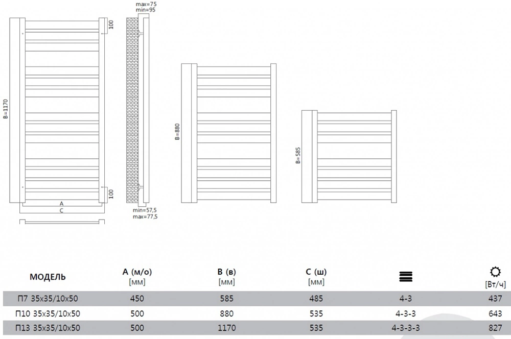 - Модель: Латте П10 50x880 с вентилями