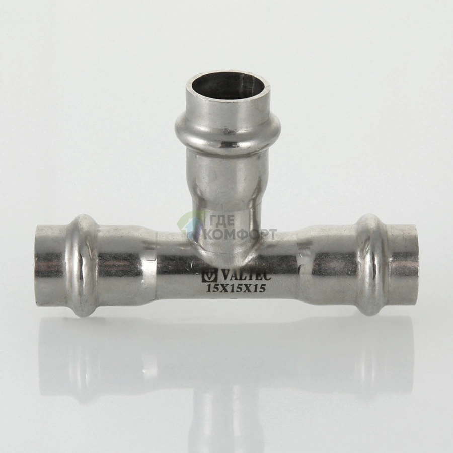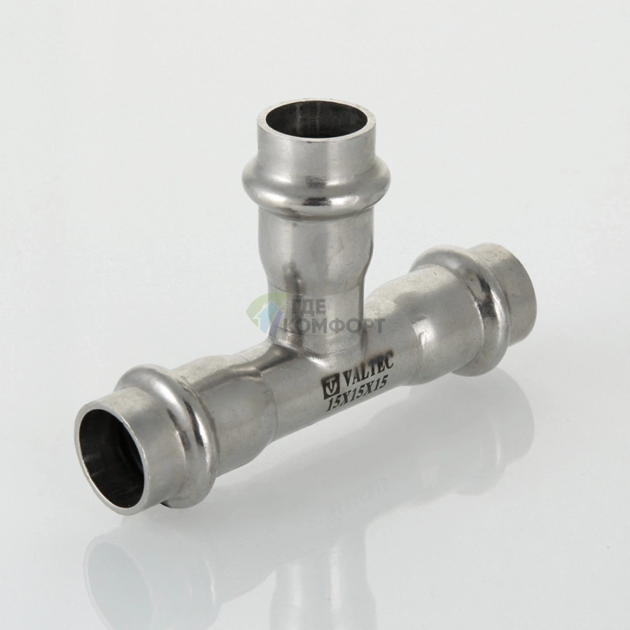 Этот фитинг предназначен для создания разветвлений в трубопроводных системах, собранных по технологии пресс-соединения. Тройник из нержавеющей стали VALTEC используется в инженерных сетях отопления, водоснабжения и кондиционирования, где требуется высокая надежность и компактность узла подключения.