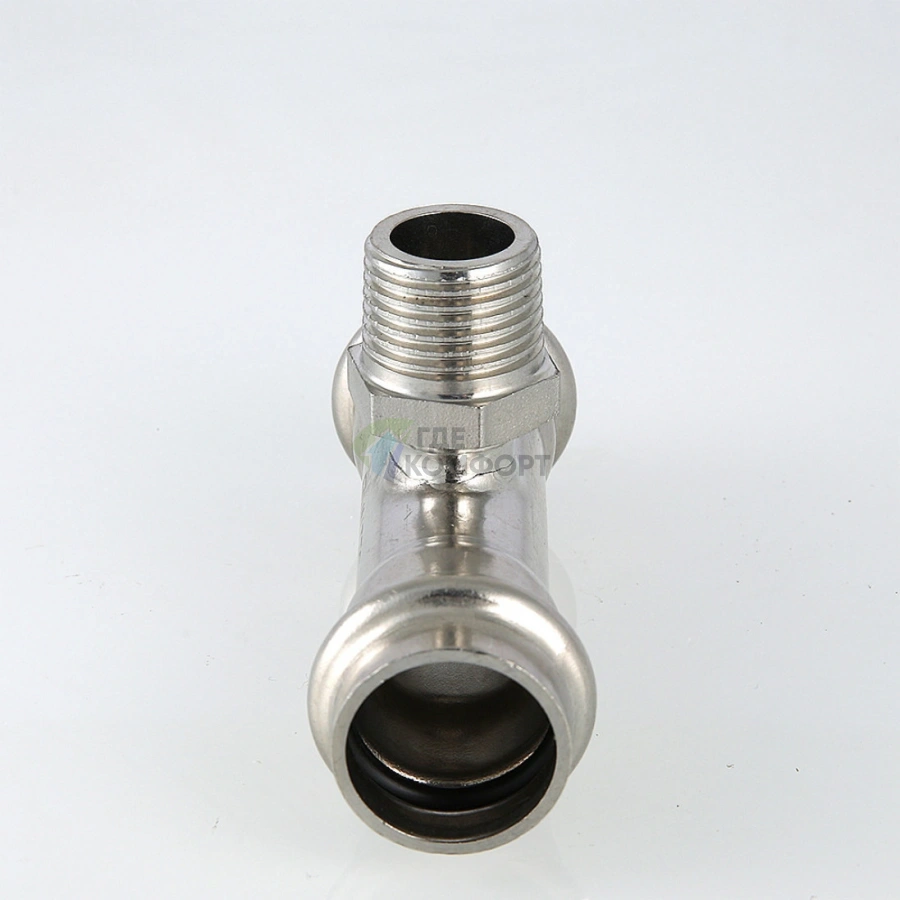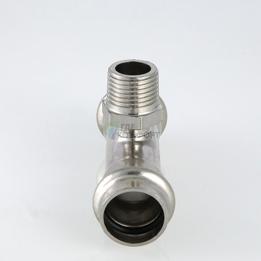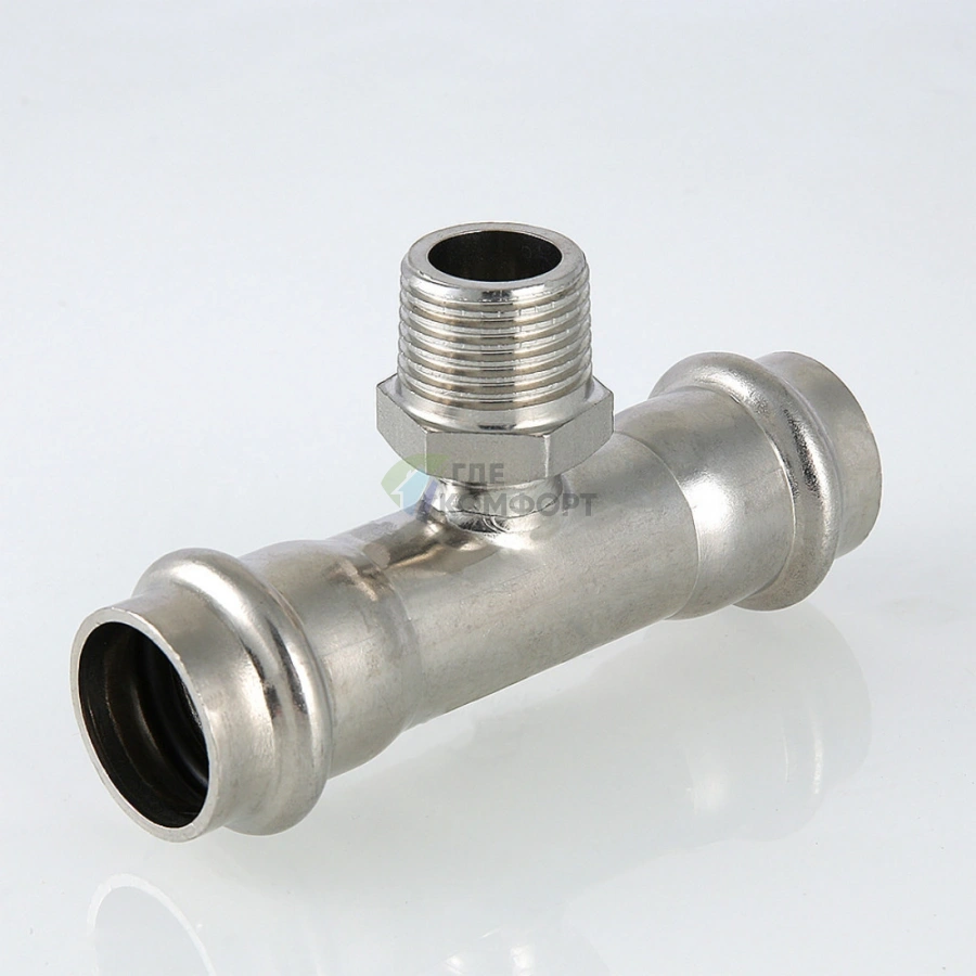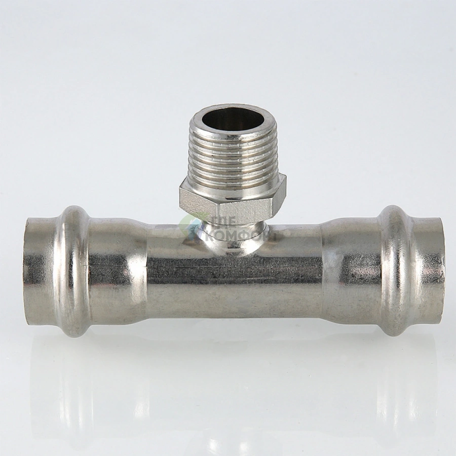 Пресс-тройник с наружной резьбой 18 х 3/4 х 18 мм из нержавеющей стали VTi.933.I.180518 VALTEC (ВАЛТЕК)