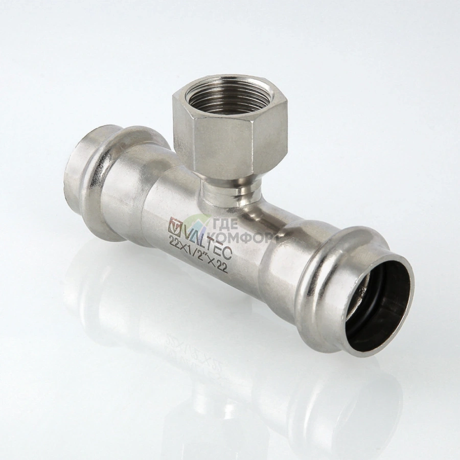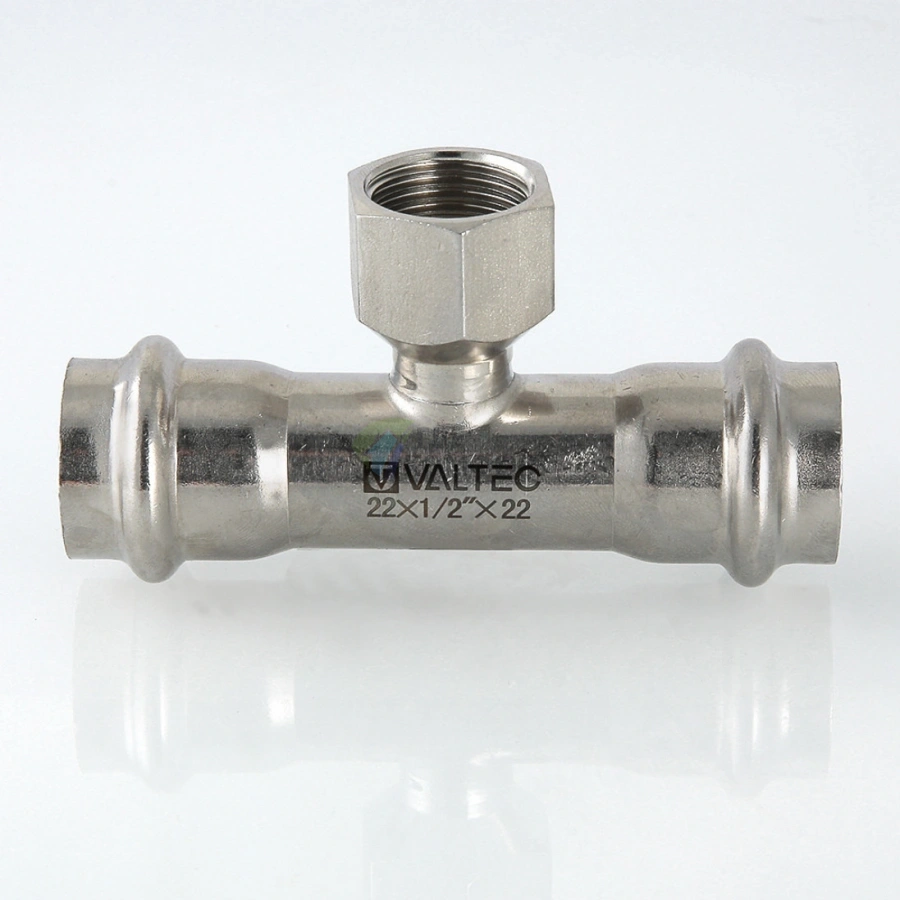 Пресс-тройник VALTEC 28 х 1/2 х 28 мм из нержавеющей стали для надежного монтажа