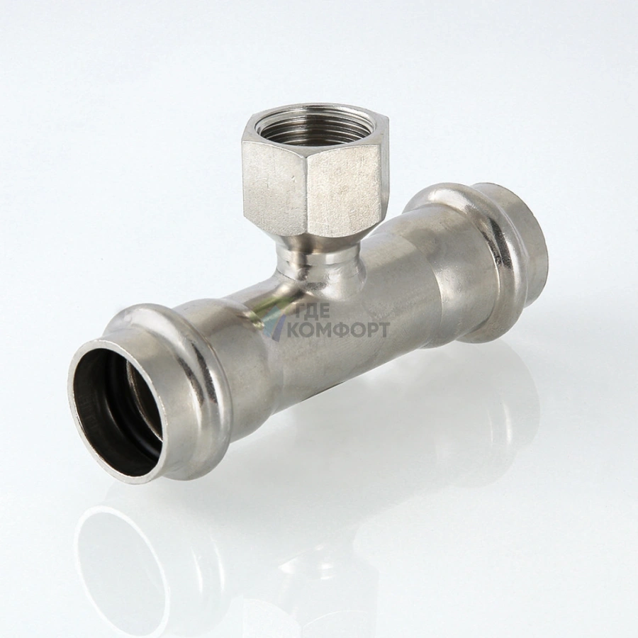 Пресс-тройник с внутренней резьбой 54 х 1 1/4 х 54 мм из нержавеющей стали VTi.932.I.540754 VALTEC (ВАЛТЕК)