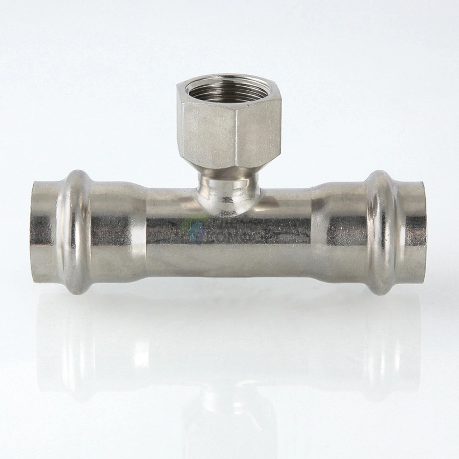 Тройник изготовлен из нержавеющей стали AISI 304, что гарантирует коррозионную стойкость и длительный срок службы в системах с горячей и холодной водой. Конструкция фитинга рассчитана на работу в составе пресс-системы.