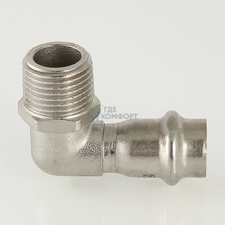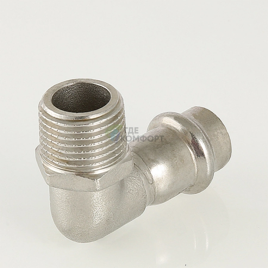 Пресс-уголок VALTEC 28 мм х 3/4" предназначен для работы с трубами из нержавеющей стали соответствующих диаметров. Наружная резьба 3/4 позволяет подключать к системе разнообразную арматуру: шаровые краны, счетчики, фильтры или переходники на другую резьбу. Фитинг широко используется при монтаже: