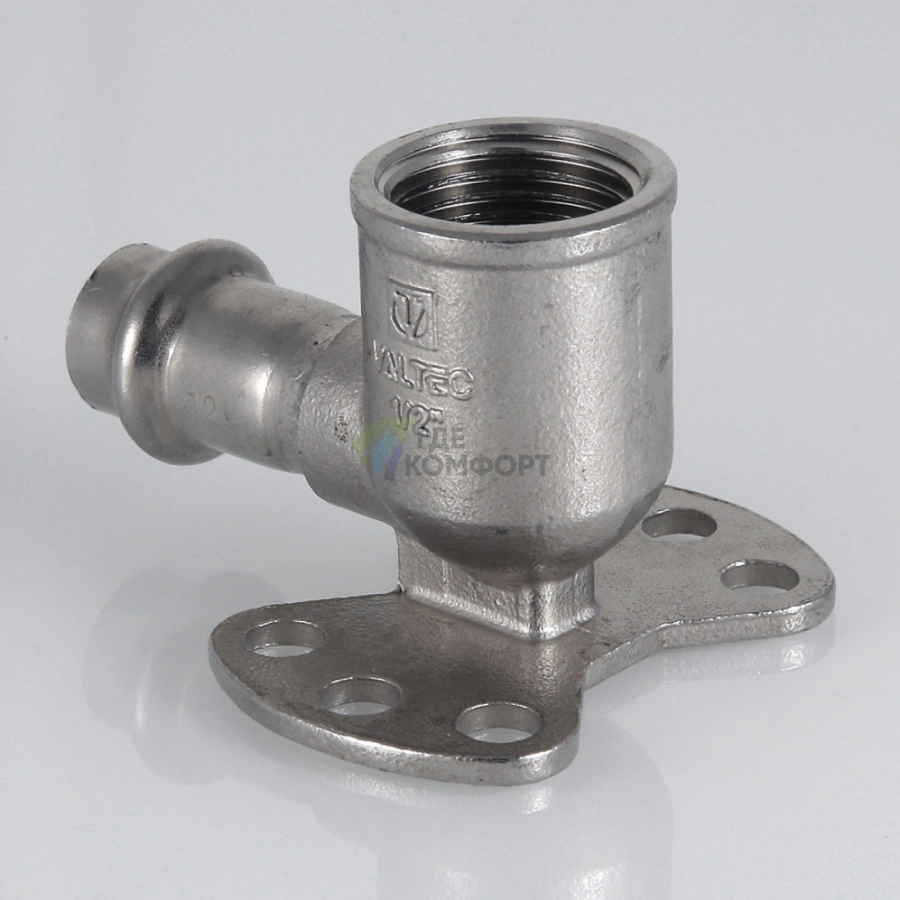 Изделие оснащено эверлок-гильзой с двойным уплотнением для гарантированной герметичности пресс-соединения. Внутренняя резьба имеет канавку для установки уплотнительного кольца, что исключает протечки. Водорозетка VALTEC полностью совместима со всеми системами и инструментами для пресс-монтажа этого бренда, а также с трубами из сшитого полиэтилена (PEX) и металлопластика соответствующего диаметра.