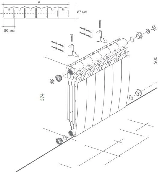 Модель с межосевым расстоянием 500 мм совместима с большинством стандартных систем отопления. Для монтажа требуется профессиональный инструмент и навыки. Рекомендуется устанавливать радиатор под окном для создания тепловой завесы.