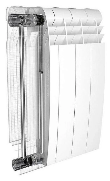 Сердечник каждой вертикальной каналы изготавливается из углеродистой стали, что обеспечивает прочность и устойчивость к гидроударам. Наружное оребрение выполнено из алюминиевого сплава с применением технологии литья под давлением. Это гарантирует оптимальное распределение тепла и быстрый нагрев.