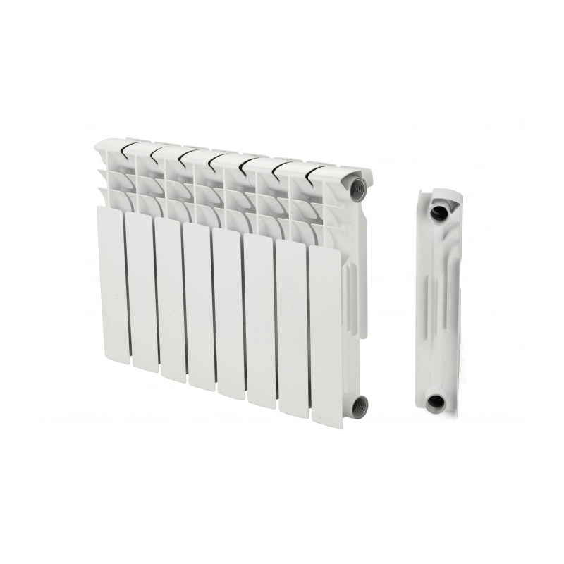 Секции этого радиатора сочетают лучшие свойства двух металлов. Внутренние вертикальные и горизонтальные каналы изготовлены из прочной стали, устойчивой к высокому давлению и химическому составу теплоносителя. Внешнее алюминиевое оребрение обеспечивает высокую теплоотдачу и быстрый нагрев помещения.