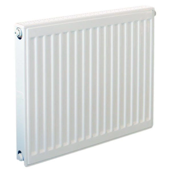 Радиатор типа 12 (две панели + два конвектора) обладает повышенной теплоотдачей. Панели изготовлены из стали толщиной 1,25 мм. Такой запас прочности позволяет выдерживать рабочее давление до 10 бар и опрессовочное до 13 бар, что превышает стандартные параметры большинства многоквартирных и частных домов. Теплоноситель в системе надежно изолирован от внешней среды, что продлевает жизнь не только радиатору, но и всей отопительной арматуре.