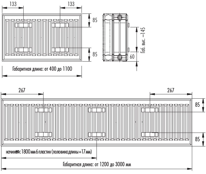 - Высокая теплоотдача за счет конструкции из трех нагревательных панелей и трех рядов оребрения.