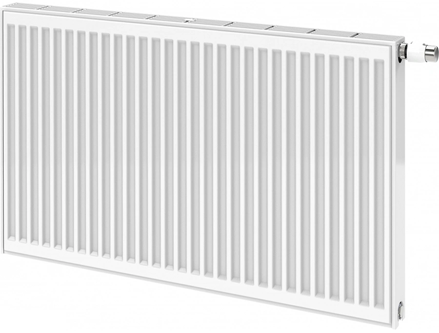 Это стальной панельный радиатор типа 22 (две панели и две конвекционные решетки) с нижним подключением типа «4». Габариты 900x600 мм делают его оптимальным для установки под стандартными оконными проемами. Конструкция обеспечивает быстрый нагрев и комфортное распределение тепла за счет конвекции.