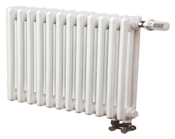 Радиатор состоит из 12 вертикальных секций (трубок), сваренных в единую неразборную конструкцию. Это исключает риск протечек в местах соединений. Корпус из высококачественной стали с внутренним антикоррозийным покрытием и внешним белым лакокрасочным слоем (цвет RAL 9016) отличается долговечностью.
