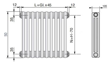 Радиатор стальной трубчатый Arbonia 3050/22 N12 3/4 с боковым подключением