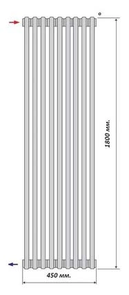- Оптимальная теплоотдача: 9 секций и габариты 1800x450 мм создают мощный тепловой поток, достаточный для обогрева просторных комнат.