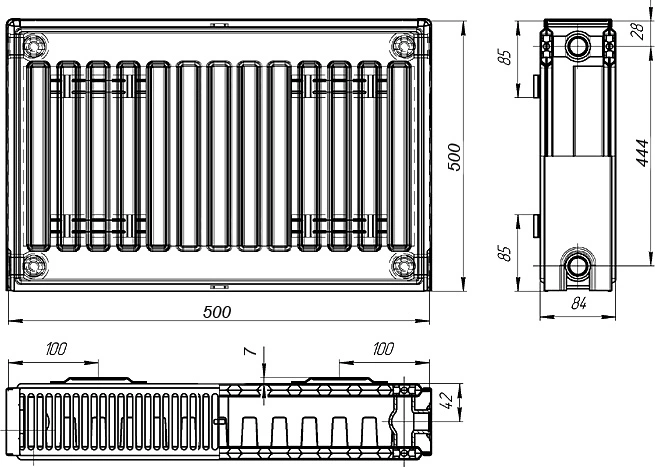Эта модель — современный панельный радиатор для водяных систем отопления в квартирах, частных домах и офисах. Он обеспечивает быстрый и равномерный обогрев помещения за счет конвекционного принципа работы.