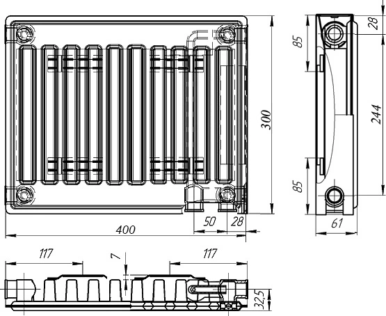 Прибор состоит из двух штампованных стальных панелей, соединенных контактной сваркой. Высококачественная сталь толщиной 1,25 мм и внутреннее антикоррозионное покрытие гарантируют стойкость к агрессивной среде теплоносителя. Верхняя панель оснащена конвекционными ребрами, что увеличивает теплоотдачу и создает эффективный поток теплого воздуха.