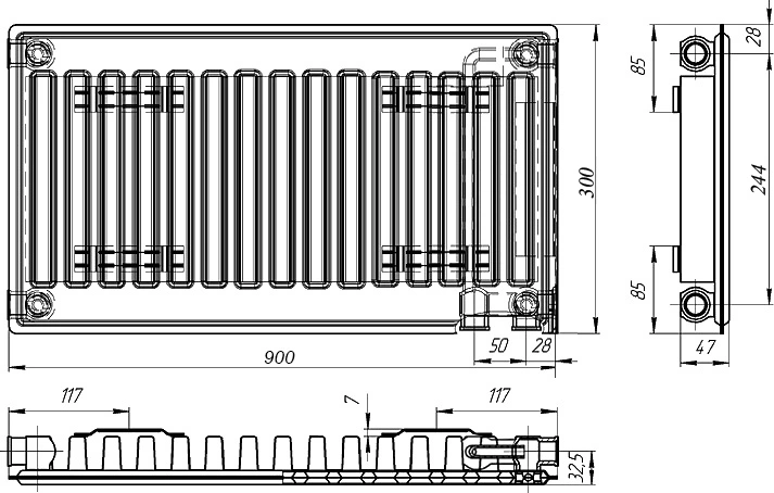 Радиатор стальной панельный Лидея ЛУ 11-309 с нижним подключением
