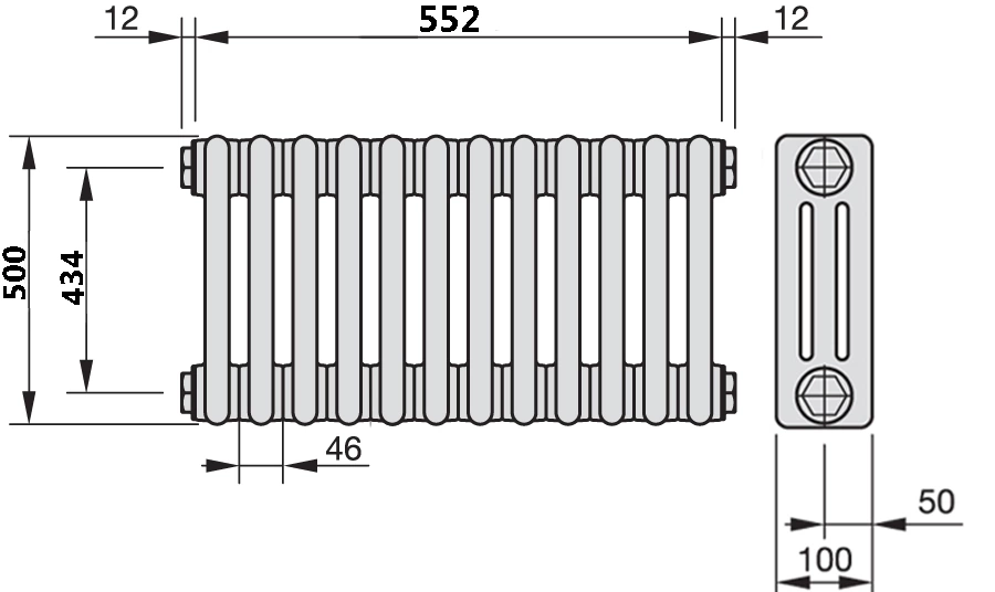 - Универсальное боковое подключение 3/4" (N12): упрощает и ускоряет монтаж радиатора к стандартным подводкам. Это экономия времени и средств на установку без необходимости переделывать коммуникации.