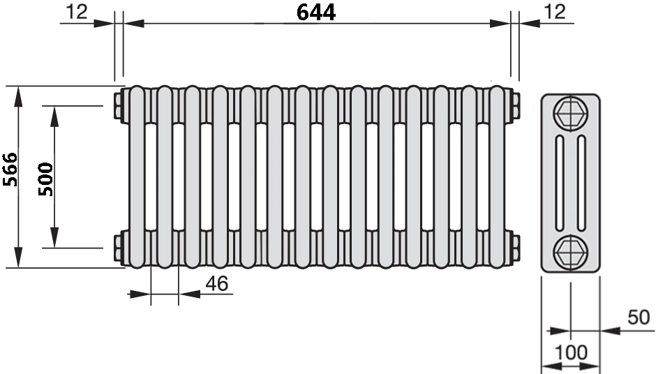 - Цвет и покрытие: Радиатор окрашен порошковой эмалью в классический белый матовый цвет RAL 9016. Покрытие устойчиво к выцветанию и легко очищается.